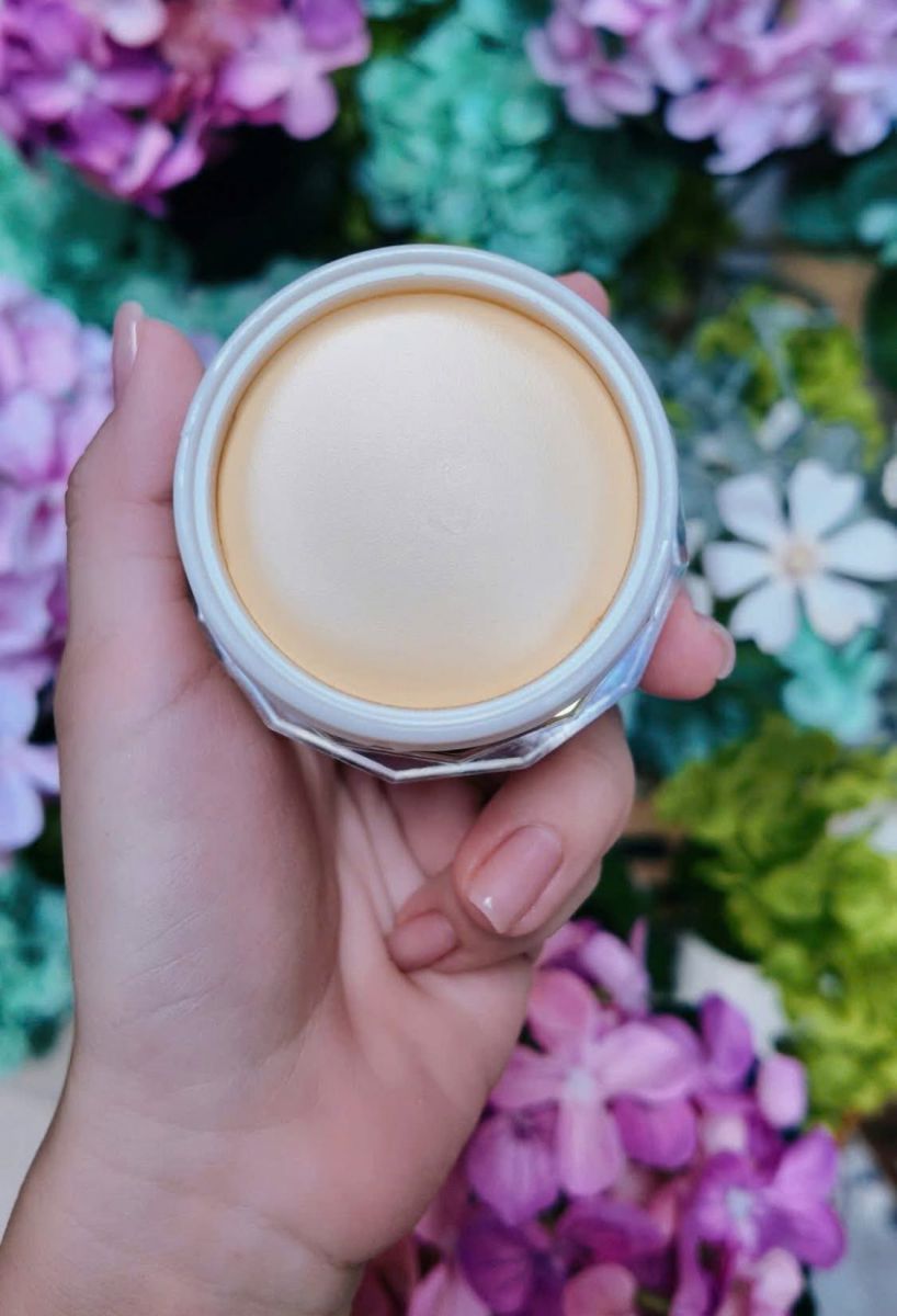 Chất kem: Dạng kem nén mịn, màu vàng nhạt, có mùi thơm phấn nhẹ. Khi thoa lên da, kem tạo một lớp màng trắng mịn, thấm khá nhanh nếu dùng lượng vừa đủ.