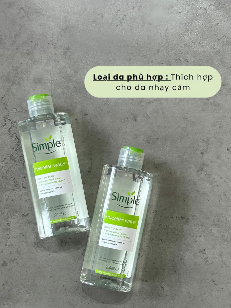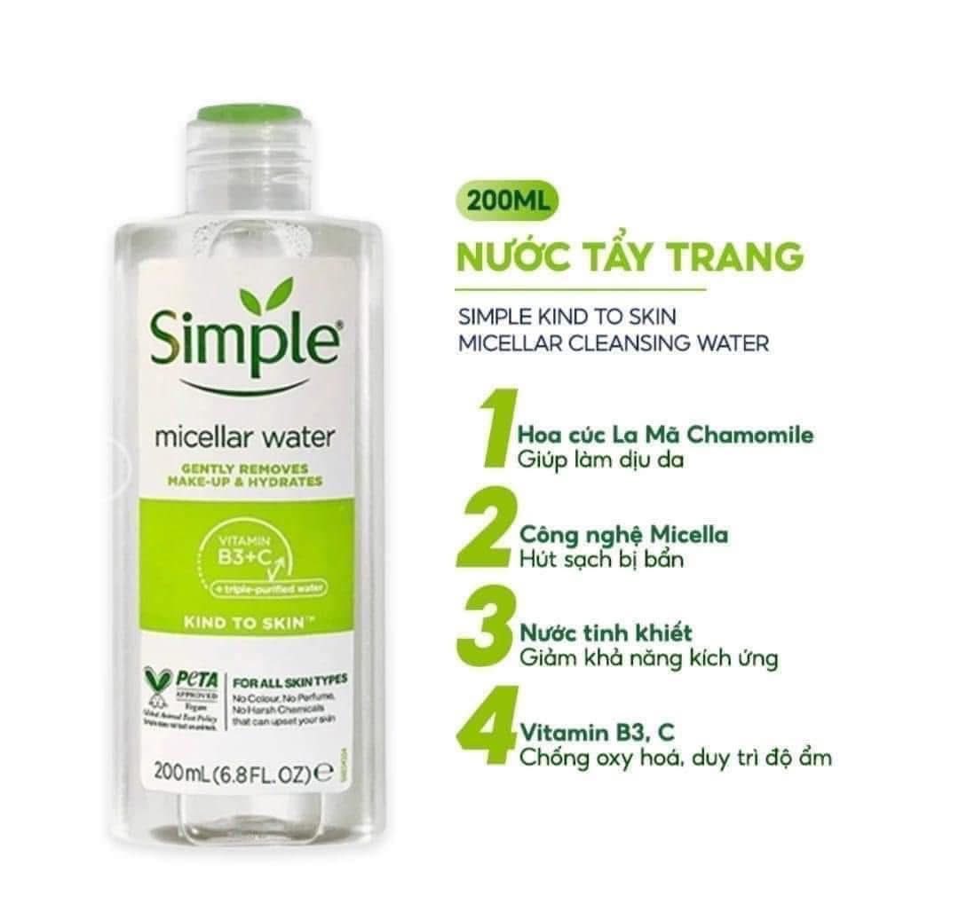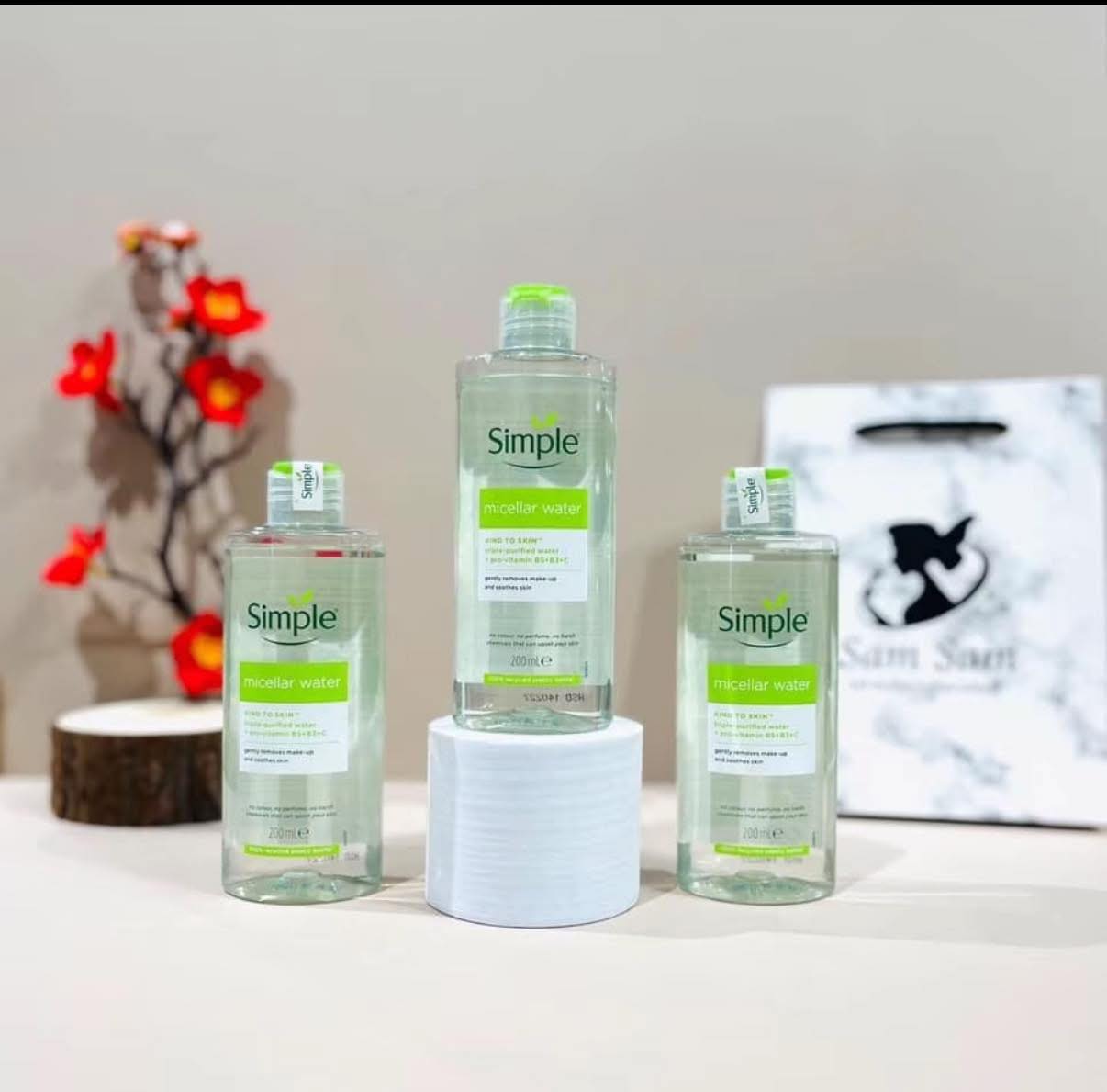 Nước tẩy trang Simple được ưa chuộng rộng rãi nhờ sự kết hợp giữa khả năng làm sạch hiệu quả và đặc tính siêu dịu nhẹ.